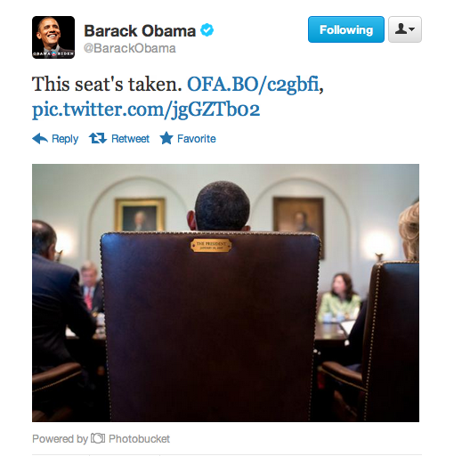 But, it was Clint Eastwood's odd monologue / comic routine / performance piece that was the most memorable part of the evening (I went to bed after 20 minutes of Mitt Romney's speech).  He had a conversation with an empty chair pretending it was Obama …and it made me wonder did someone vet this speech?  He's been pilloried in the press since then and the Obama camp's tweet "this seat's taken" shows their strong ability to use social media to their advantage.