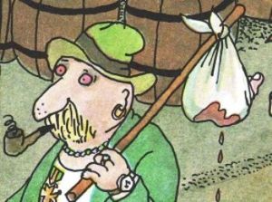 In another illustration, a hobo carries a severed foot in his bundle. Is it a spare