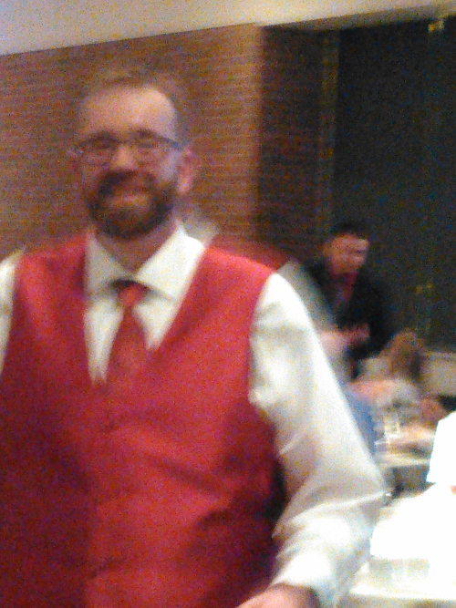 Drew looked very dashing in a red vest and very happy. True story, Drew was the first to cry at his wedding. Shhhh don't tell anyone else.