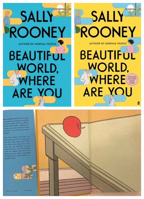 Book covers and endpapers of Beautiful World Where Are You by Sally Rooney (endpaper photo taken by author).