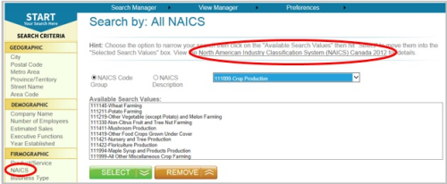 Another way to limit a long list of companies in Toronto to a short list of interior decorating companies in Toronto is by NAICS (North American Industry Classification System) classification number.
