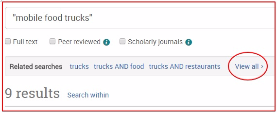 The results are paltry. BUT you can get more — and a more complete picture of the mobile food truck business in Canada — by clicking on "View all" and then selecting e.g. "food AND mobile businesses" from the pop-up window of "Recent searches."