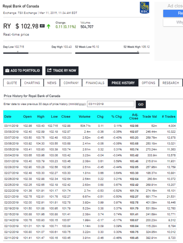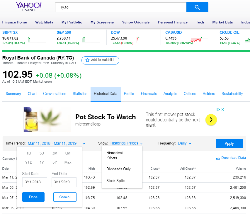 Yahoo! Finance likewise provides historical, Canadian daily stock prices.