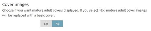 Another new setting is the Cover Images control. This setting will allow you to change the book covers of 'mature adult' books to a basic book cover when you are signed into your account. The Kiss of the Night book cover below is an example of the basic book cover.