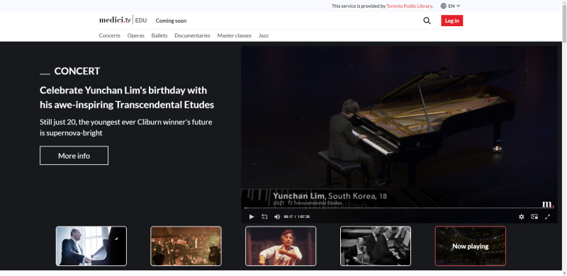 - After accessing medici.tv through www.tpl.ca/medici, select Log in and sign in with your medici.tv account.