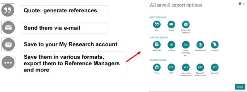 - Quick Look – appears on each search where hovering your mouse over it. It opens a panel on the search results page where a user can see the full abstract & subject indexing (where applicable). In the panel, select “See full document” or click on the title of the document to navigate to the document page.