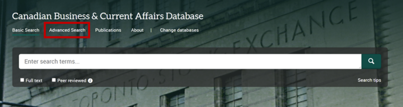- Enter ‘Canadian Business and Current Affairs’ or ‘CBCA’ in the search box