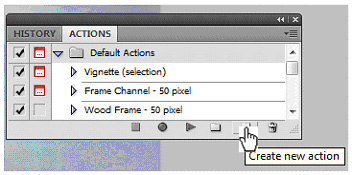 - Display Actions Window:Select Window from the top navigation menu in Photoshop and choose Actions from the drop down which will display a new window. Click the “Create New Action” button in the Actions window as shown below in the image.