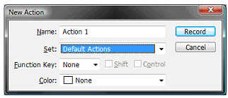 Enter a name for the action and then click the Record button. Please note that after you click the Record button that all movements in Photoshop will be recorded so only follow the steps below to set up the batch image resize.