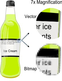 Vector illustrations (unlike raster or pixel images) can be scaled and distorted infinitely without loss of quality because it is based on points rather then pixel information. Just think about a graphic for a business card and then trying to put it on a billboard at Dundas Square. With a jpeg, tiff, or bmp file, that simply can’t be done. With an illustration file design in Adobe Illustrator, Corel Draw, this can easily be accomplished without increasing file size or decreasing image quality. In addition, the file size remains quite compact.