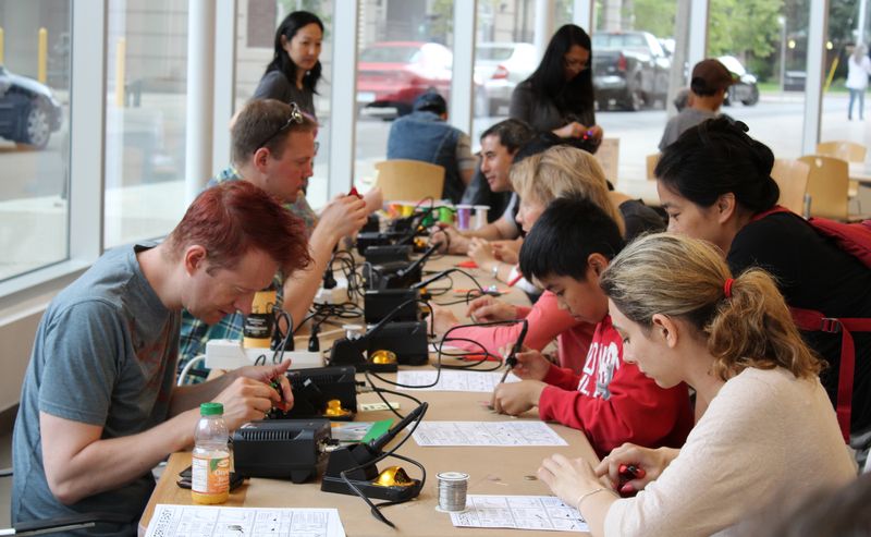 On Sat. June 27, 2015 Toronto Reference Library hosted a Soldering Workshop in the Browsery. Happily the rain did not dampen anyone's enthusiasm for learning a new skill.