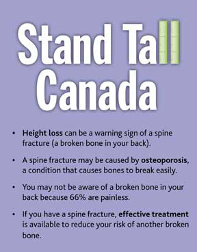 November is Osteoporosis month and Osteoporosis Canada recommends that everyone over the age of 50 should take a height measurement annually. Why? While it's normal to lose a little height as we get older, losing 2cm or more may be a warning sign of a possible spine fracture due to osteoporosis.