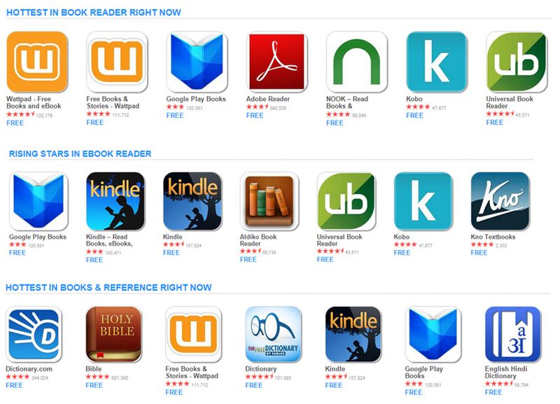 can specify a specific device or all devices. The AppCrawler will let you know the hottest or most used app. You can find out what’s the hottest in book readers, rising stars in eBook readers, or hottest in books & reference.