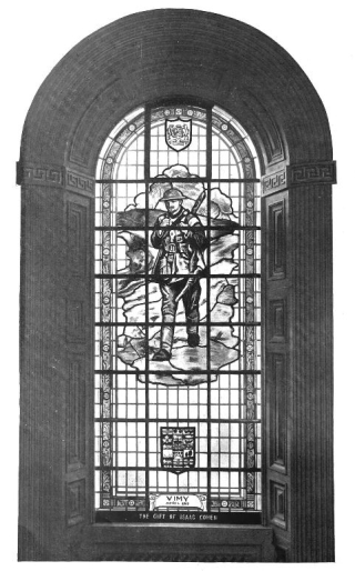 Vimy Memorial window, Memorial Hall, Kingston, Ontario. Unveiling of memorial tablets, Humanities & Social Sciences Department, Toronto Reference Library.
