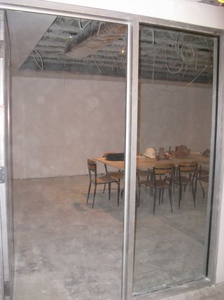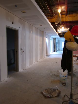 In this future program room in the lower level the contractors, the architect and TPL staff meet regularly to monitor work progress.