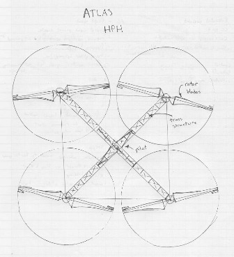 The winning design used ultra-lightweight materials and four large rotors around the pilot, or "powerplant", who produced 1.1 kW of power to lift Atlas 3.3 meters into the air. The technical information on AeroVelo's website has details about the aircraft's design, construction and testing.