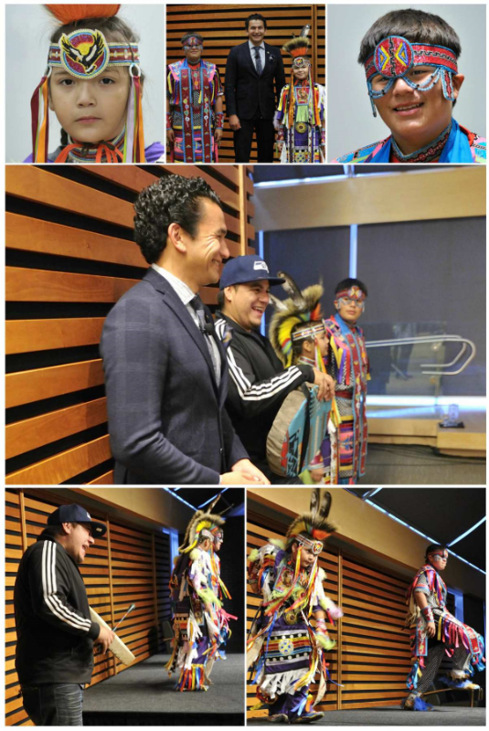 On behalf of Toronto First Nations and in recognition of all Aboriginal people, Wayne Moberly and sons Jayden Wemigwans and James Melonson welcomed Wab with traditional drumming and dancing, captivating  the audience.