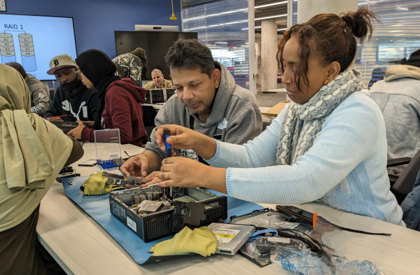 On November 29 and 30, participants in TPL’s Let’s Learn Tech IT Essentials course joined a hands-on learning lab at North York Central Library, where they practiced disassembling and reassembling computer hardware to identify and learn more about their individual components. TPL’s IT Services department donated old computer equipment, otherwise destined for disposal, to provide this practical learning opportunity.