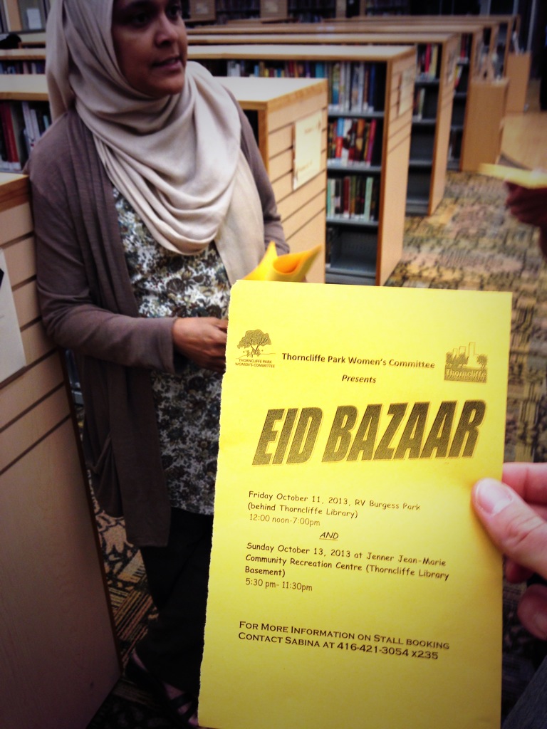 We began at the Thorncliffe library branch. Recently renovated (as many branches have been) here Islamic-inspired carpets were put in to reflect the surrounding population. When Thorncliffe was designed in the 1950s on the site of the Thorncliffe Park Raceway horse track it was expected to house around 15,000 people but now double that live here. One of Toronto's densest apartment neighbourhoods, that figure makes looking up at the lights different, knowing there are more people than average in all those apartments. There's always people on the street in Thorncliffe as a result. The buses are packed bringing people into and out of the neighbourhood.