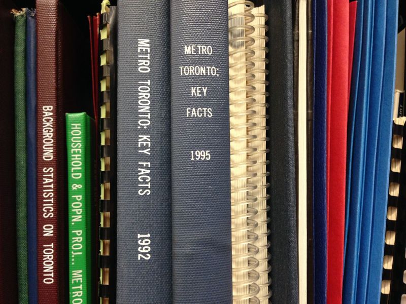 This week I'll make a series of posts on some of the bits and bobs (and books) that can be found in the Toronto Reference Library's great Toronto Collection. These are all open shelf — you can browse on the 2nd floor, and discover things you didn't think you were looking for. Sometimes what appear to be dry statistics elicit heretofore-unknown facts and stories about the city. It's also interesting to look at older volumes, and compare to the city now as a way to gauge how much and how fast the city has changed. Wandering through the shelves like this is how writing ideas are generated sometimes.