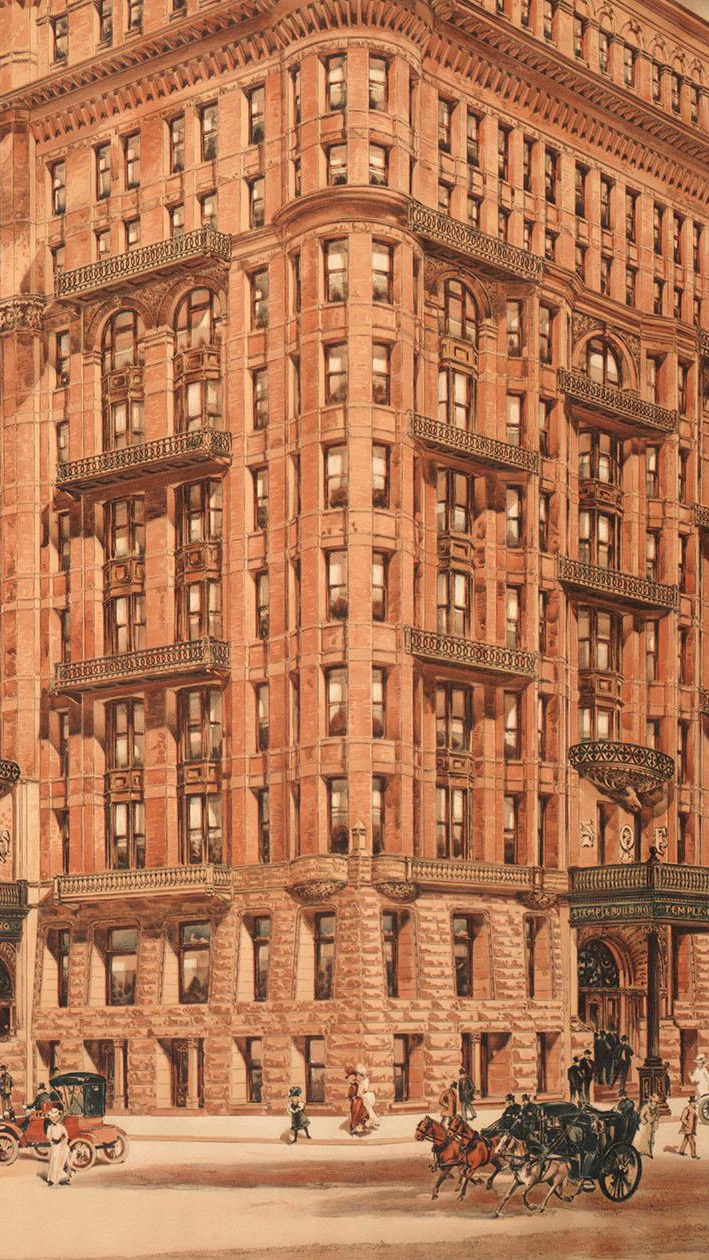 The Temple Building (1895–1970) was commissioned by Oronhyatekha, a Kanyen'kehà:ka (Mohawk) businessman and the second Indigenous person in Canada to earn a medical degree. It was the headquarters for the International Order of Foresters, led by Oronhyatekha. (See full image on Digital Archive.)