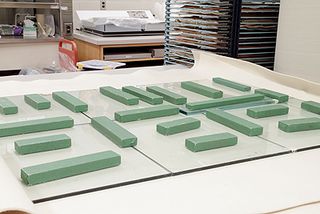 Glass and weights are placed around the edges to keep the humidity inside the map.