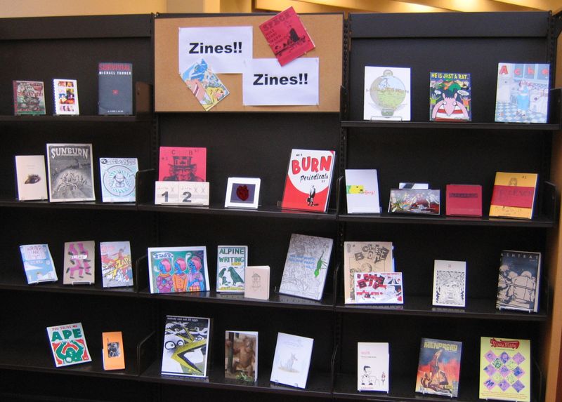 about 800 zines (and growing.) Zines are arranged alphabetically by