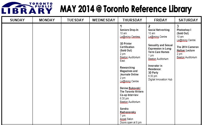 This month, Forbidden City: inside the court of China's Emperors, authors Barbara Ehrenreich, Karen Connelly and Lisa Moore, and the biggest show at TRL, the 2014 Toronto Comic Arts Festival.