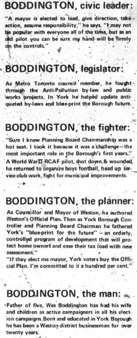The Toronto Star and political controversy go together, whether it’s 2014 or 1969. York mayoralty candidate Wes Boddington came out swinging.