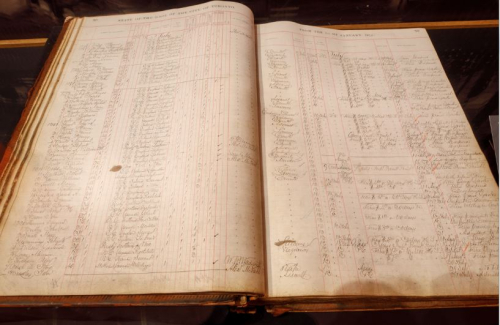 This registry was used to record the individuals who were incarcerated in the Don Jail from 1874-1877: their names, ages, trade, “rank in life,” offences, sentence and how they were discharged. More than half were charged with drunkenness. Vagrancy and larceny (theft) are also common offences. Prior to the establishment of the Criminal Code in 1892, vagrancy laws were used to prosecute sex workers as well as those who ran or frequented bawdy houses. In the gallery, the registry is open to show the records of those incarcerated in July of 1874, including men, women and children as young as 11. All are noted as being of the “lower class.” A number of women have “prostitute” recorded as their trade.