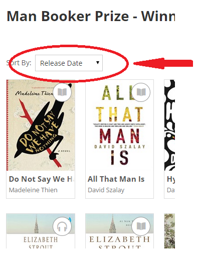 But here's a hot tip: we have compiled a list of 157 past Man Booker award-winners and nominees, and many of them won't be nearly as hard to get. If you sort the list by Release Date instead of by Relevance (see image below), all of this year's nominees will be moved to the top of the list. (And if you then choose Available Now from the Show Me menu on the left of screen: instant gratification!)