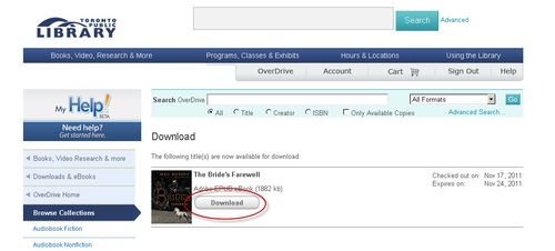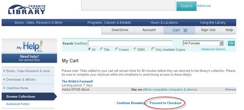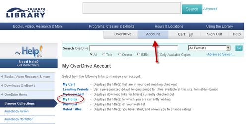 Log in to the Overdrive home page http://toronto.lib.overdrive.com
