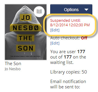 As with holds on physical library materials, suspending keeps your place in the waiting list, but allows you to: