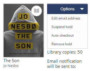 - In your Holds list, choose the item you want to suspend and click on Options.