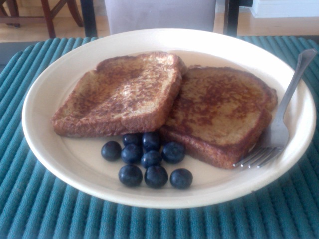(French Toast with syrup and blueberries from Clueless In The Kitchen)